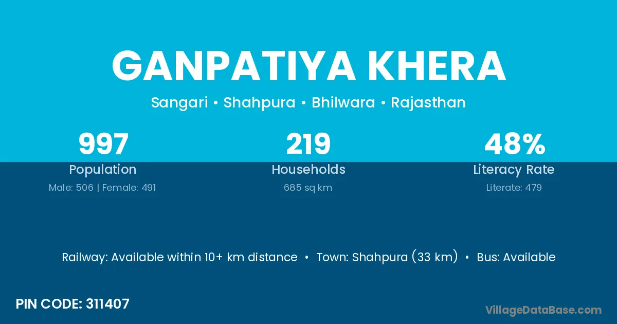 According to Census 2011 information, the village code of Ganpatiya Khera village is 311407.
