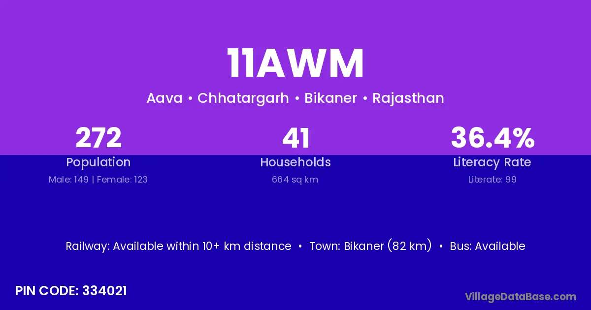 11awm village has a total population of 272 people, of which 149 are males and 123 are females.