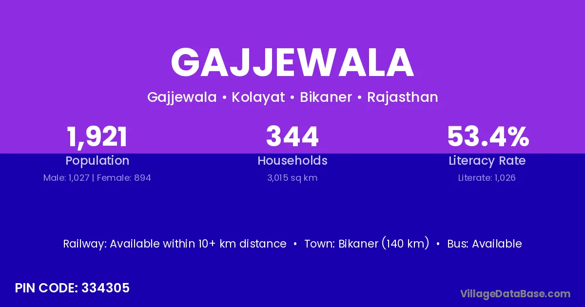 Bikaner (140 km) is the nearest town to Gajjewala village for major economic activities and is located approximately 140 km away.