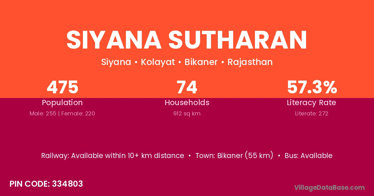 Siyana Sutharan village has a total population of 475 people, of which 255 are males and 220 are females.