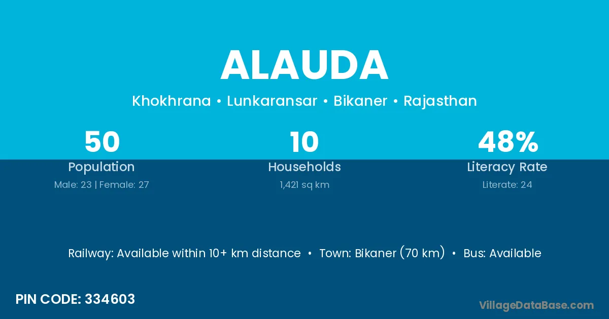 Bikaner (70 km) is the nearest town to Alauda village for major economic activities and is located approximately 70 km away.