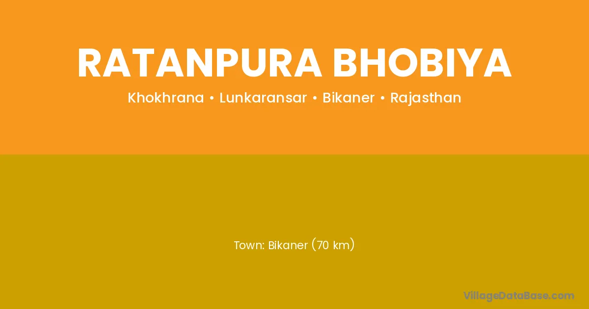 Bikaner (70 km) is the nearest town to Ratanpura Bhobiya village for major economic activities and is located approximately 70 km away.