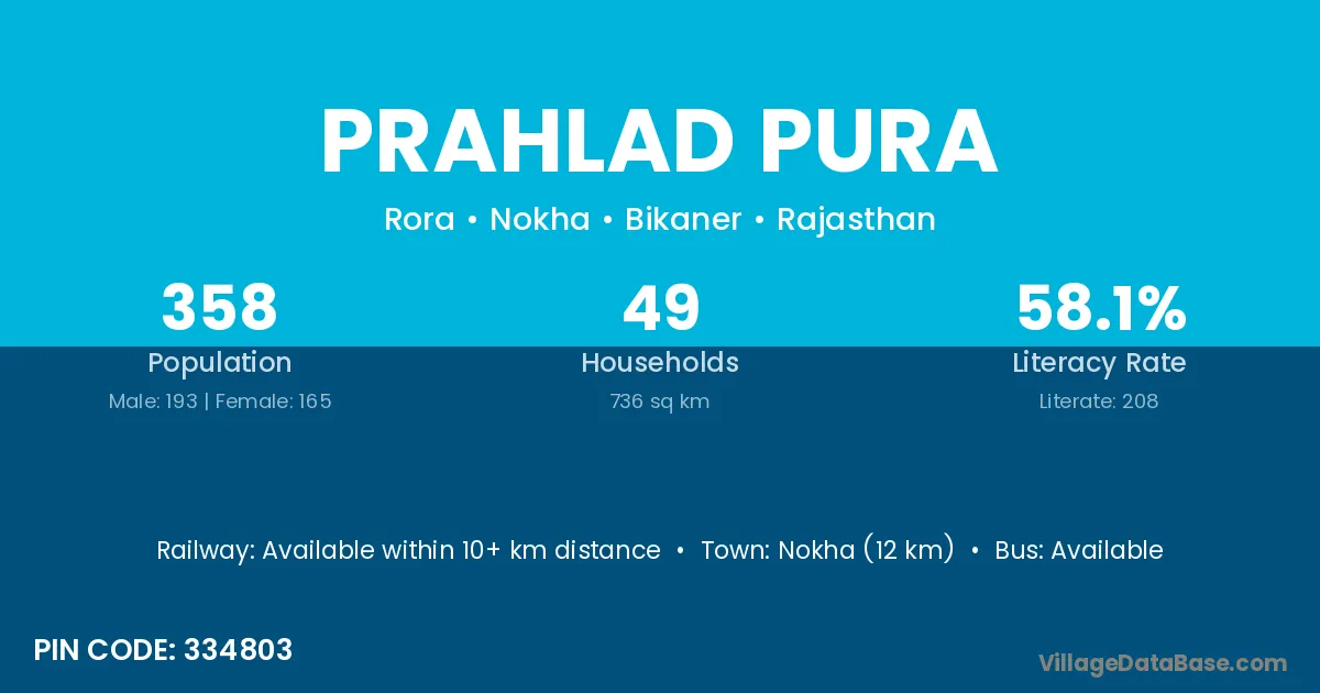 Nokha (12 km) is the nearest town to Prahlad Pura village for major economic activities and is located approximately 12 km away.