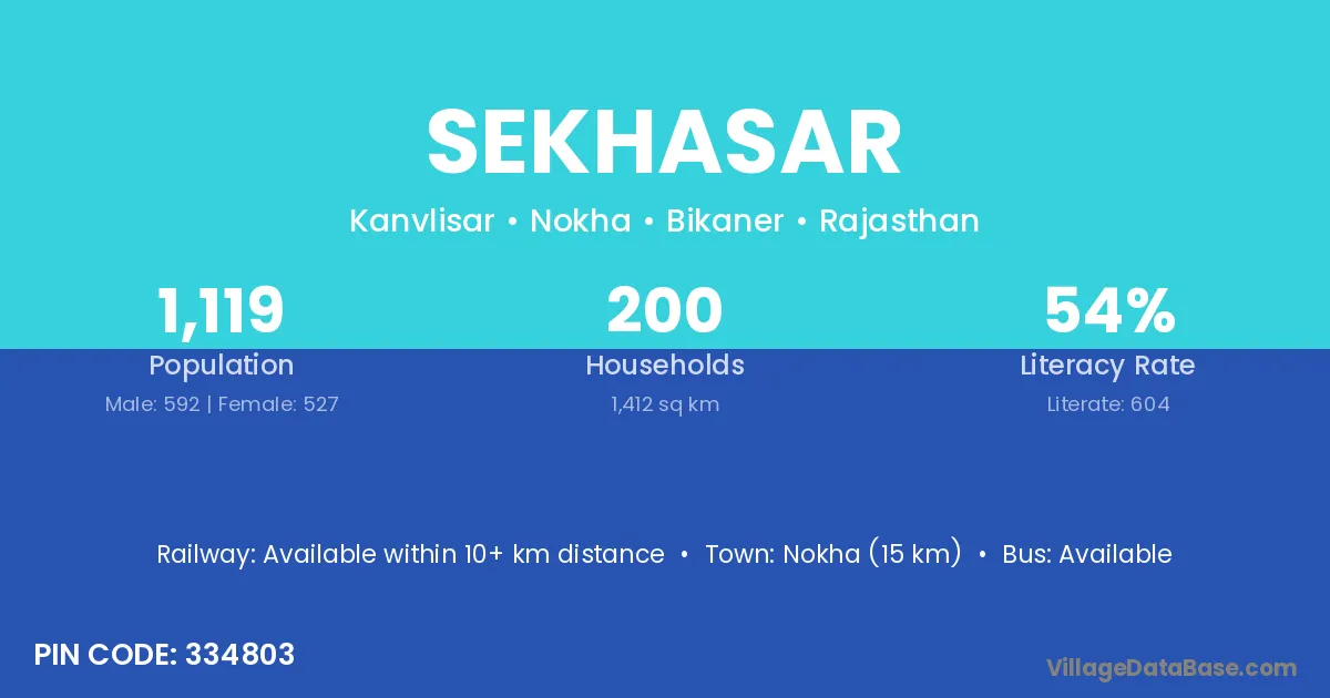 Nokha (15 km) is the nearest town to Sekhasar village for major economic activities and is located approximately 15 km away.
