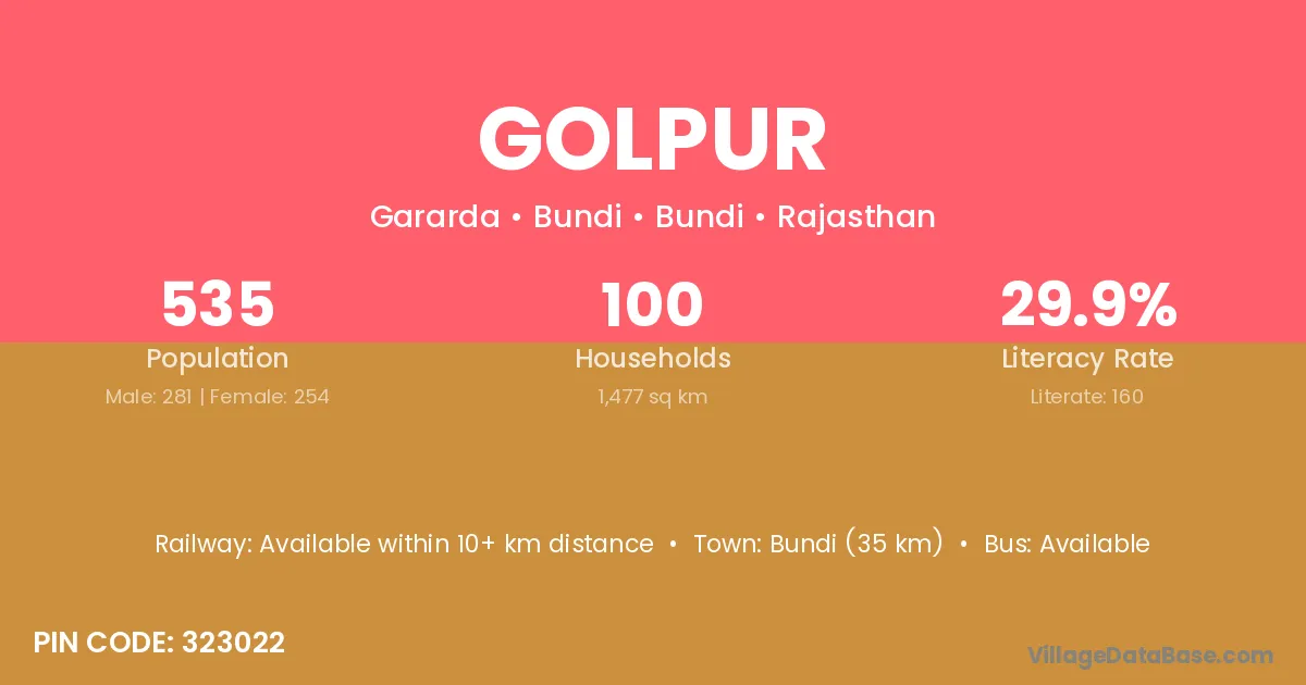 Bundi (35 km) is the nearest town to Golpur village for major economic activities and is located approximately 35 km away.