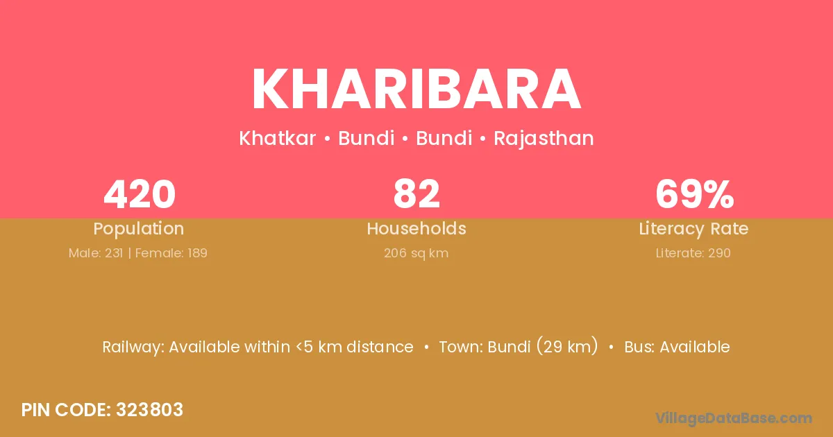 Bundi (29 km) is the nearest town to Kharibara village for major economic activities and is located approximately 29 km away.