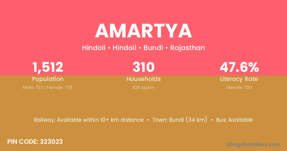Bundi (34 km) is the nearest town to Amartya village for major economic activities and is located approximately 34 km away.