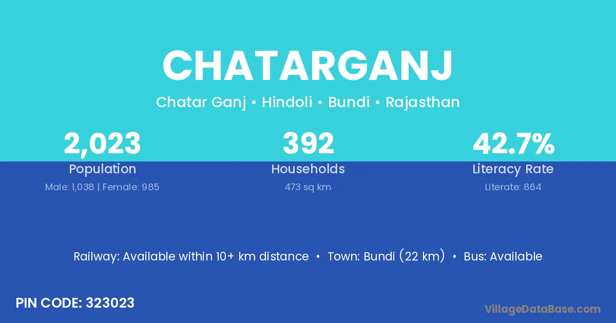 Bundi (22 km) is the nearest town to Chatarganj village for major economic activities and is located approximately 22 km away.