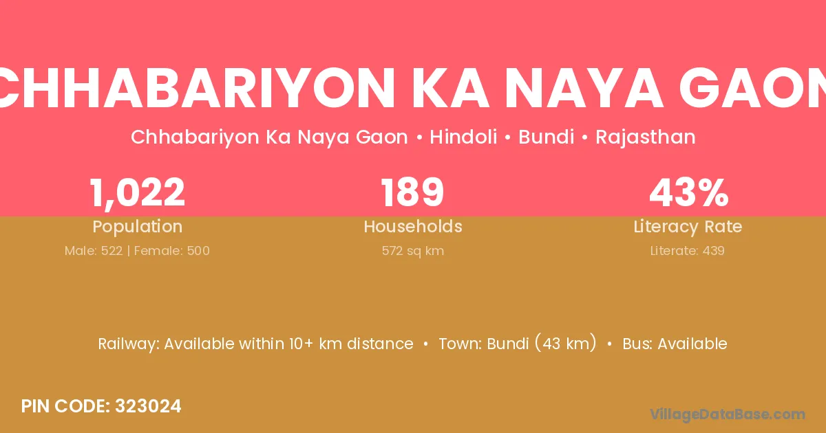 Chhabariyon Ka Naya Gaon village has a total population of 1,022 people, of which 522 are males and 500 are females.