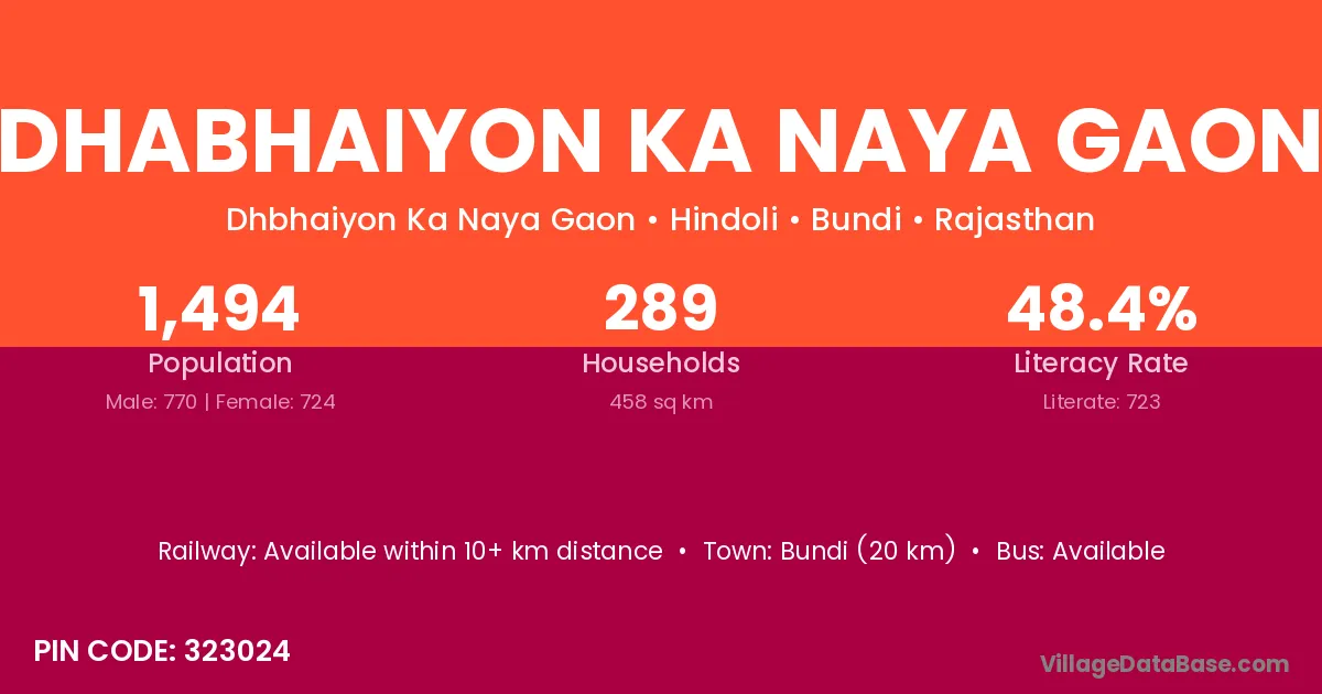 Dhabhaiyon Ka Naya Gaon village has a total population of 1,494 people, of which 770 are males and 724 are females.