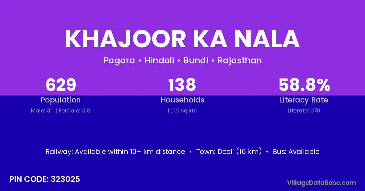 Khajoor Ka Nala village has a total population of 629 people, of which 311 are males and 318 are females.