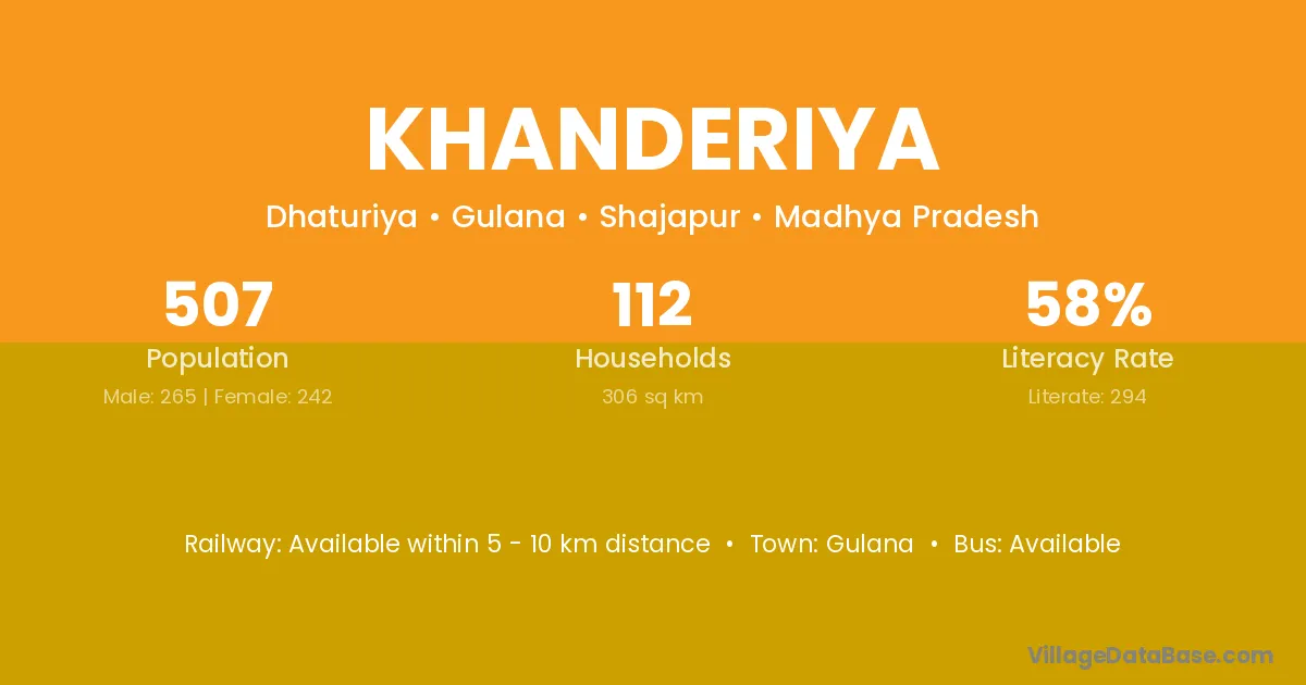 The literacy rate of Khanderiya village is 33.33%. Male literacy stands at 41.18% and female literacy at 23.81%.