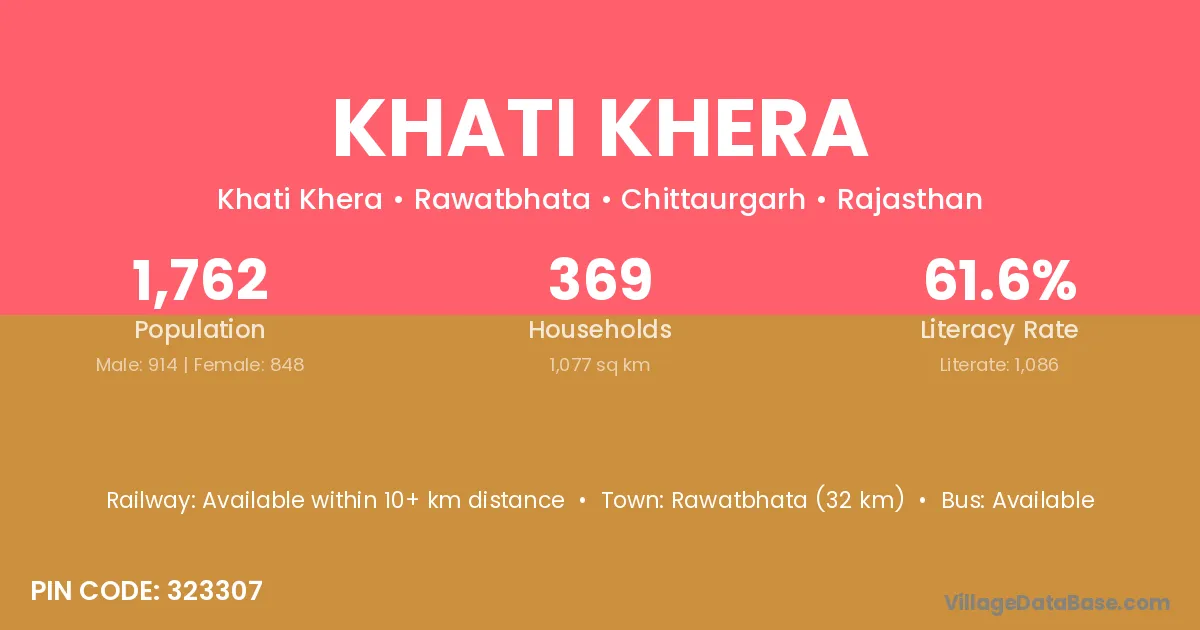 Bundi (16 km) is the nearest town to Khati Khera village for major economic activities and is located approximately 16 km away.