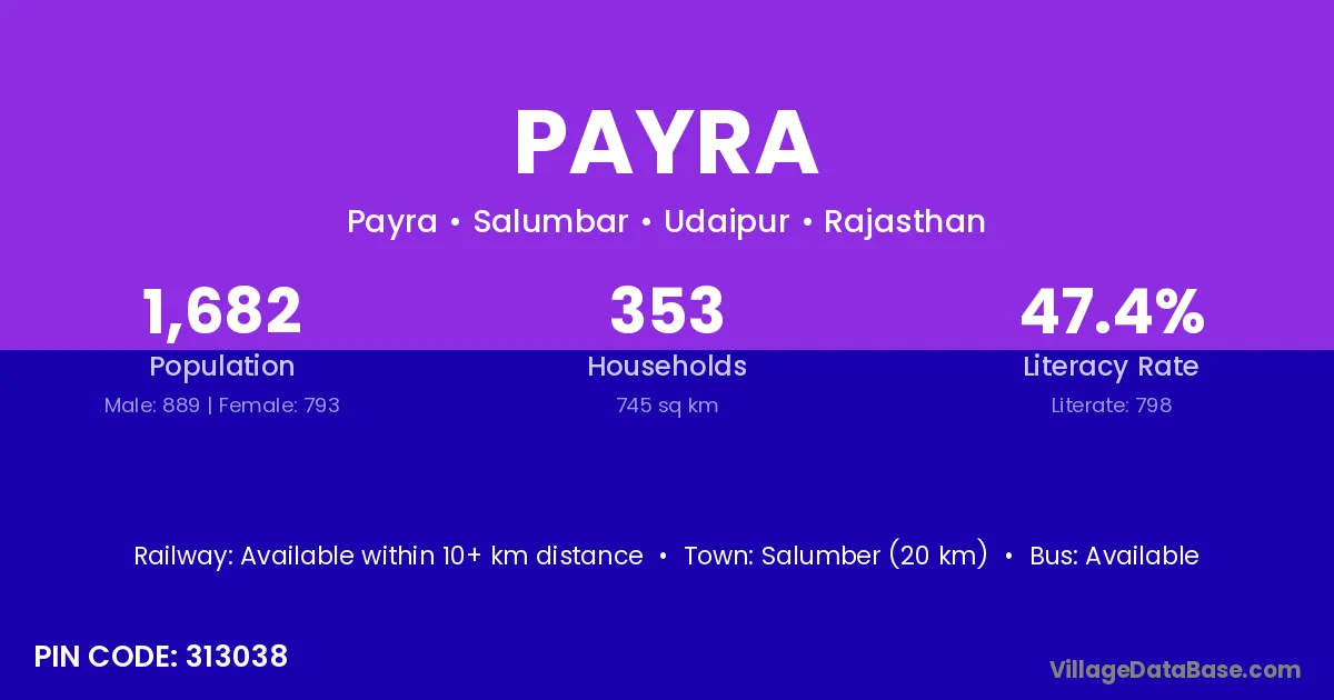 Bundi (31 km) is the nearest town to Payra village for major economic activities and is located approximately 31 km away.