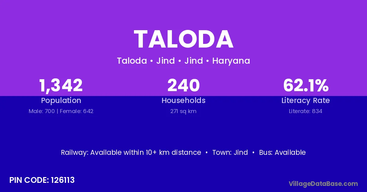 Bundi (45 km) is the nearest town to Taloda village for major economic activities and is located approximately 45 km away.