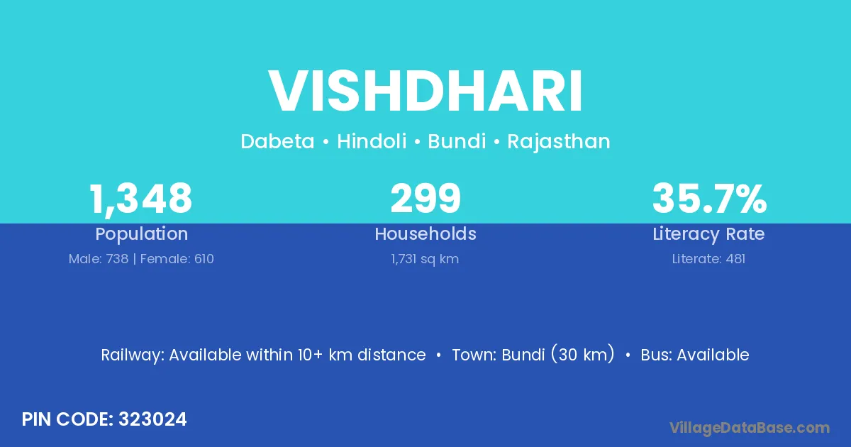 Bundi (30 km) is the nearest town to Vishdhari village for major economic activities and is located approximately 30 km away.