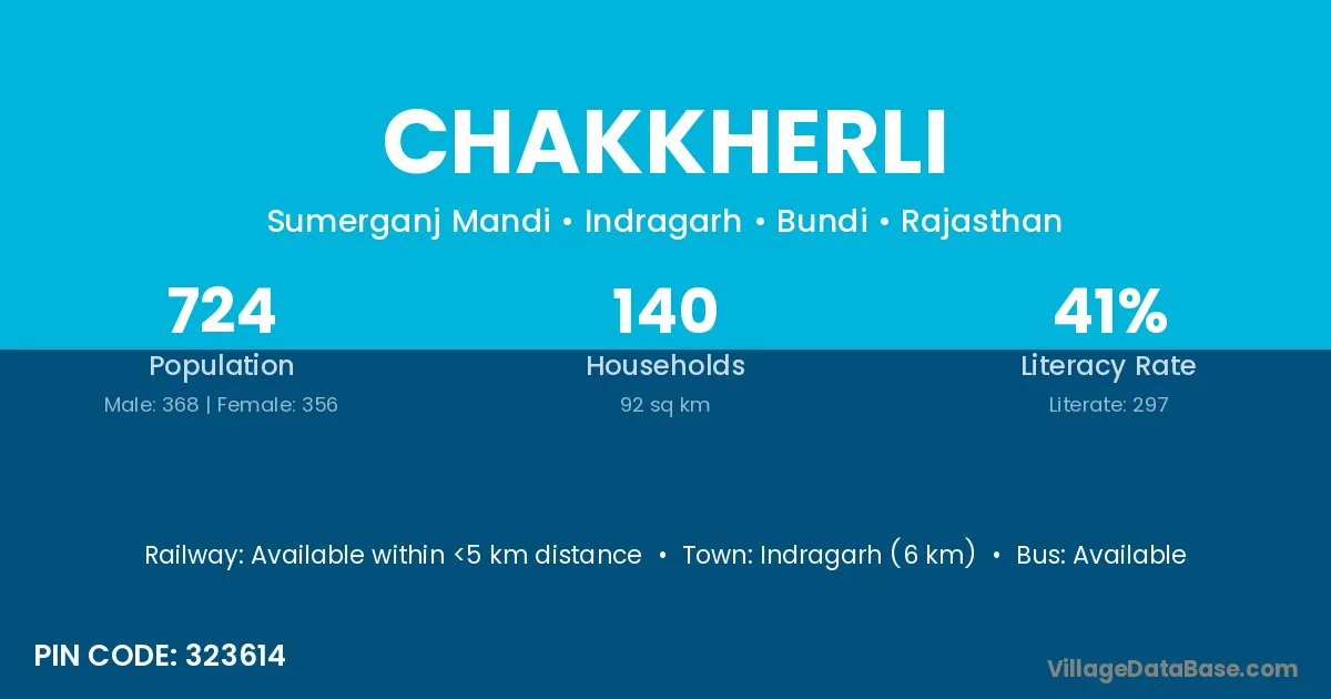 Chakkherli village has a total population of 724 people, of which 368 are males and 356 are females.