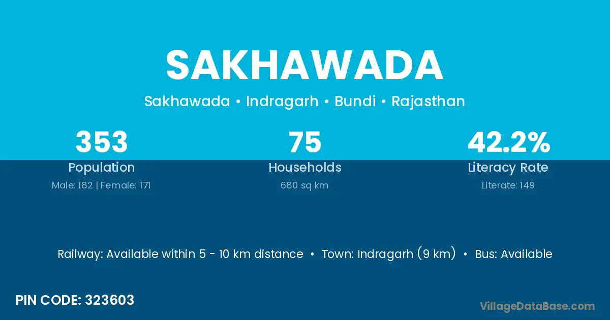 Sakhawada village has a total population of 353 people, of which 182 are males and 171 are females.