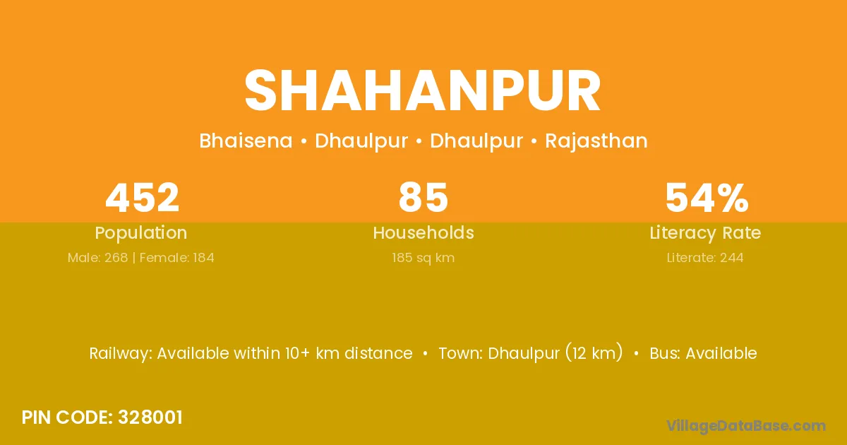 Lakheri (22 km) is the nearest town to Shahanpur village for major economic activities and is located approximately 22 km away.