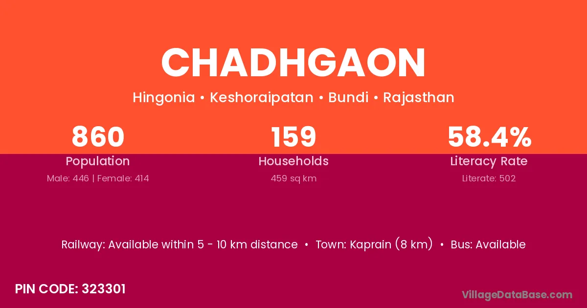 Chadhgaon village has a total population of 860 people, of which 446 are males and 414 are females.