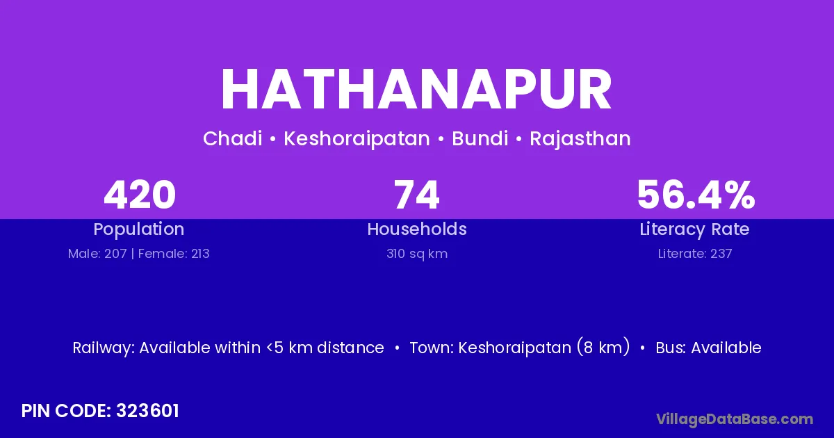 Hathanapur village has a total population of 420 people, of which 207 are males and 213 are females.