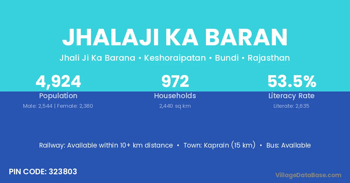 Kaprain (15 km) is the nearest town to Jhalaji Ka Baran village for major economic activities and is located approximately 15 km away.