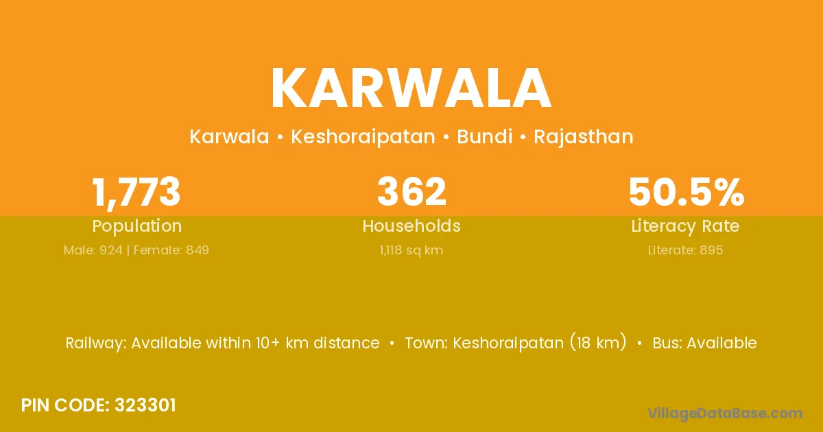 Keshoraipatan (18 km) is the nearest town to Karwala village for major economic activities and is located approximately 18 km away.