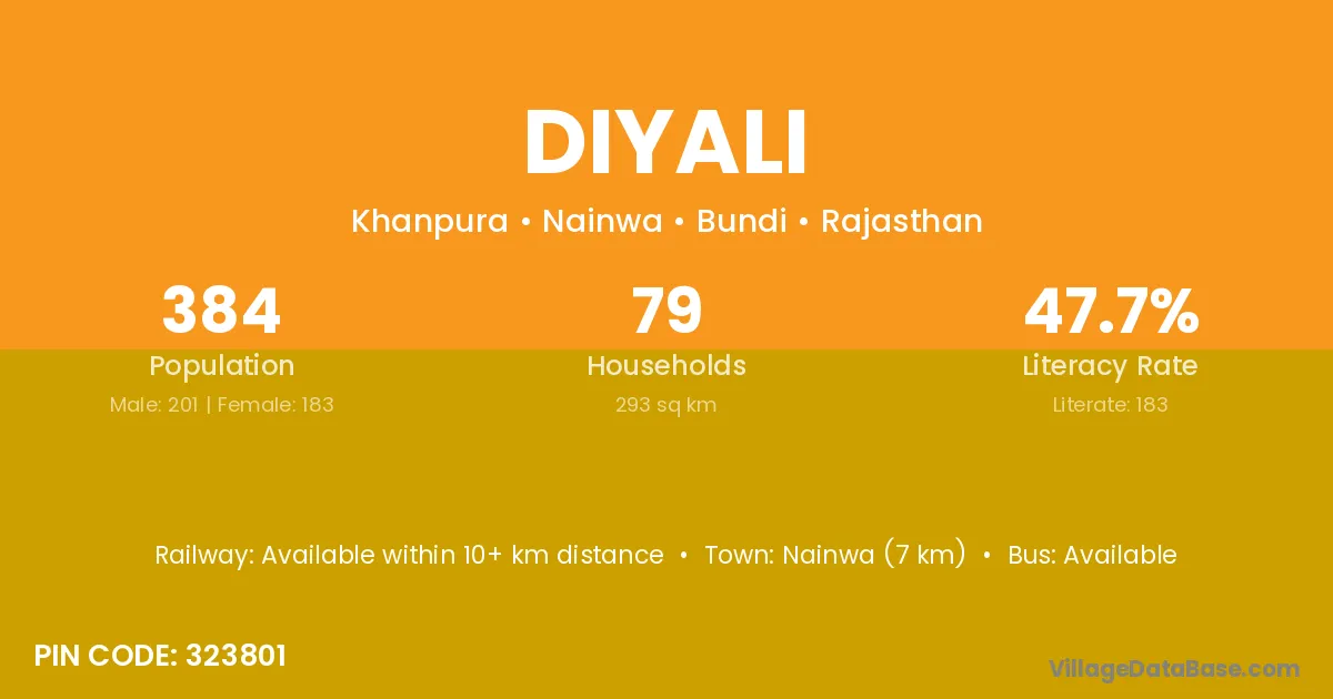 Nainwa (7 km) is the nearest town to Diyali village for major economic activities and is located approximately 7 km away.