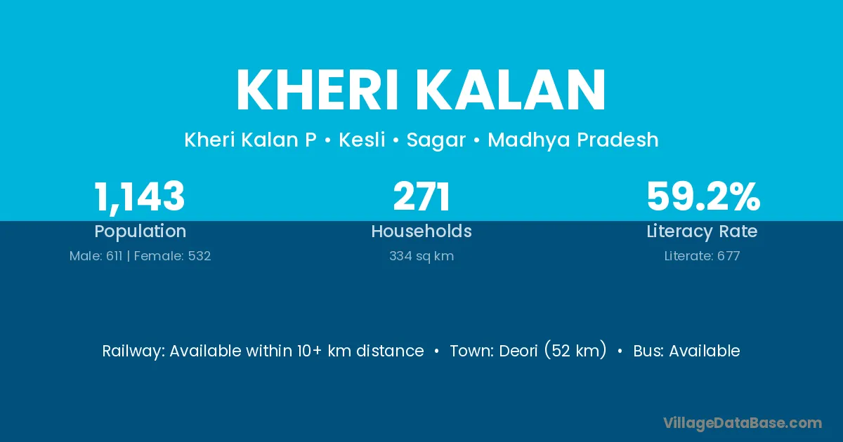 The literacy rate of Kheri Kalan village is 53.37%. Male literacy stands at 59.49% and female literacy at 47.62%.