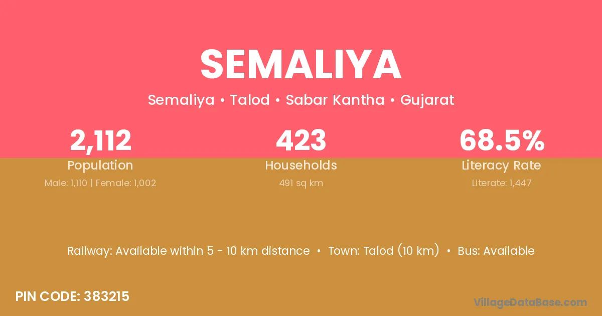 Semaliya village has a total population of 678 people, of which 327 are males and 351 are females.