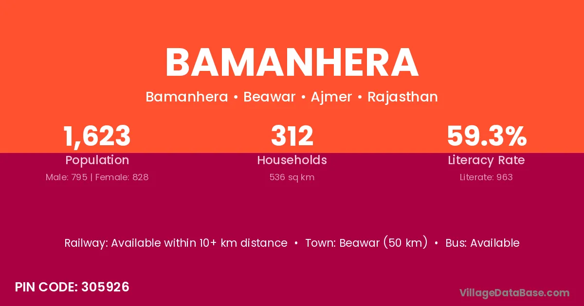 The literacy rate of Bamanhera village is 60.85%. Male literacy stands at 73.76% and female literacy at 48.84%.