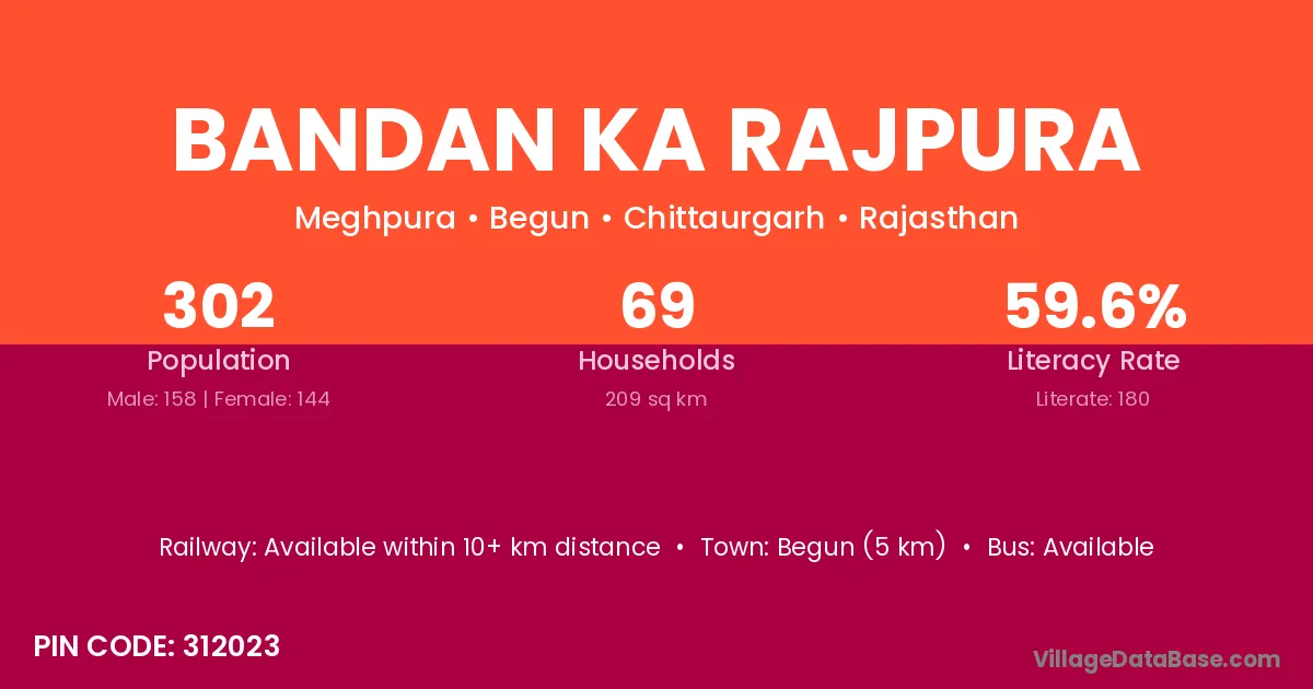 Begun (5 km) is the nearest town to Bandan Ka Rajpura village for major economic activities and is located approximately 5 km away.