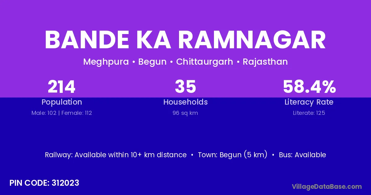 Begun (5 km) is the nearest town to Bande Ka Ramnagar village for major economic activities and is located approximately 5 km away.