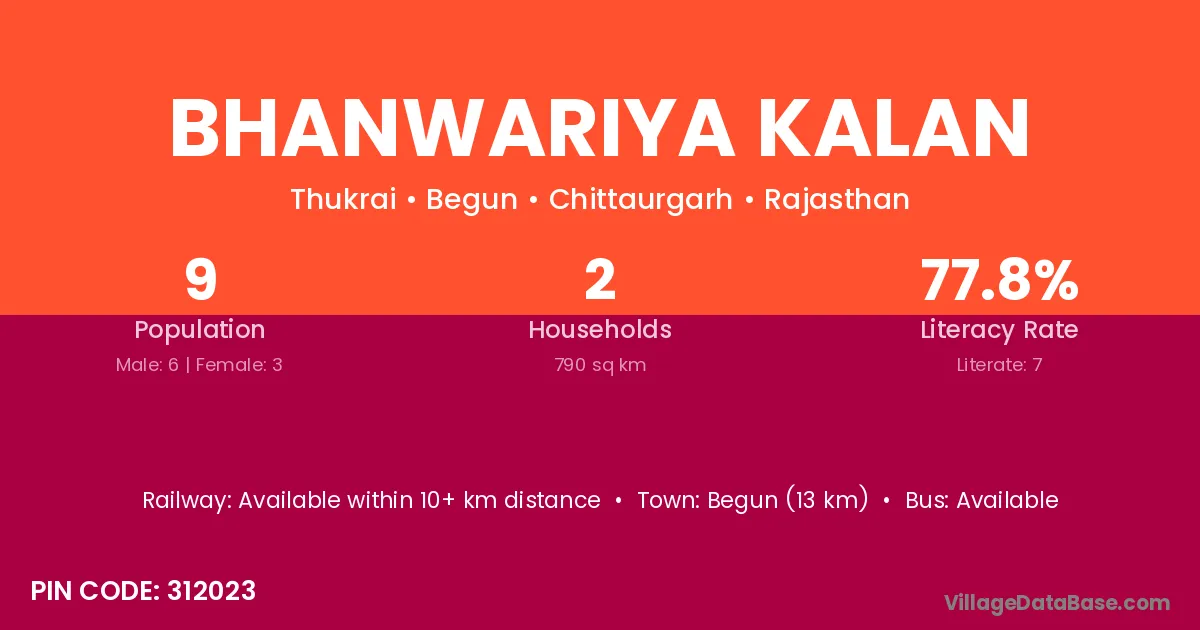 Bhanwariya Kalan village has a total population of 9 people, of which 6 are males and 3 are females.