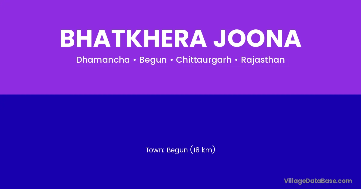 Begun (18 km) is the nearest town to Bhatkhera Joona village for major economic activities and is located approximately 18 km away.