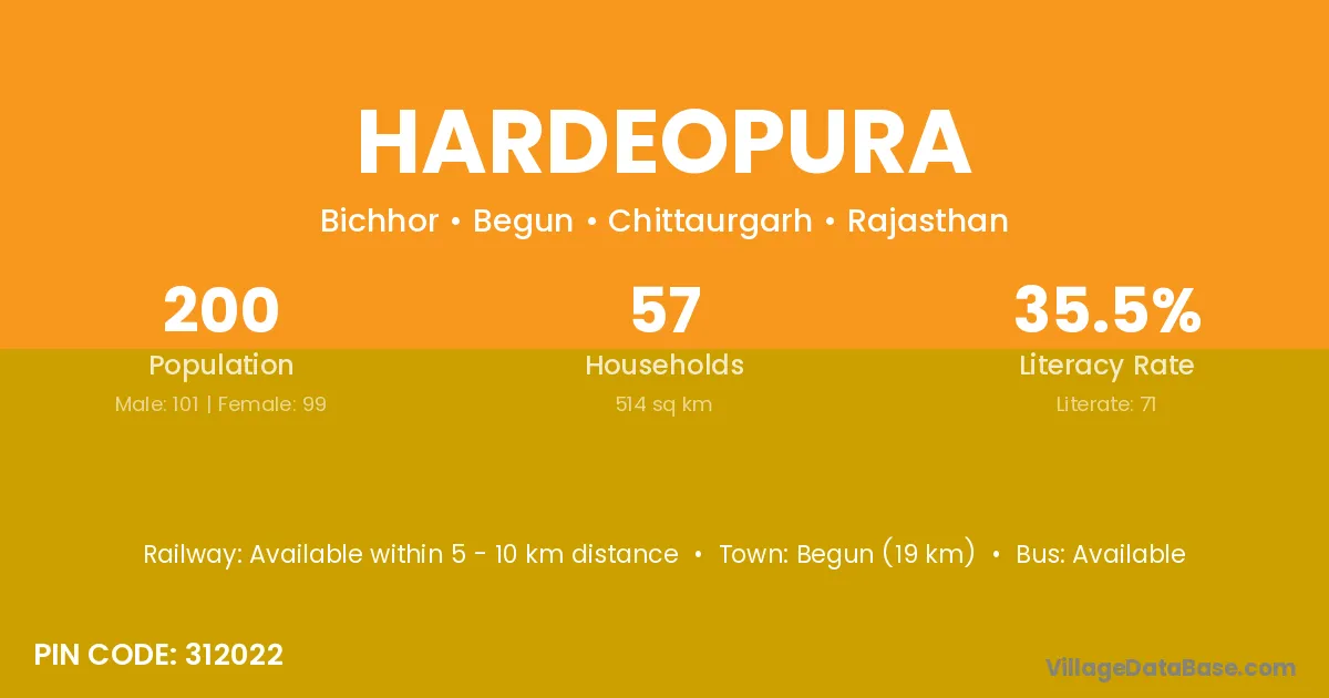 Begun (19 km) is the nearest town to Hardeopura village for major economic activities and is located approximately 19 km away.