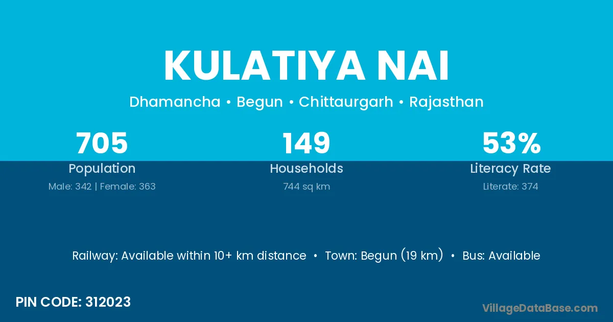 Kulatiya Nai village has a total population of 705 people, of which 342 are males and 363 are females.