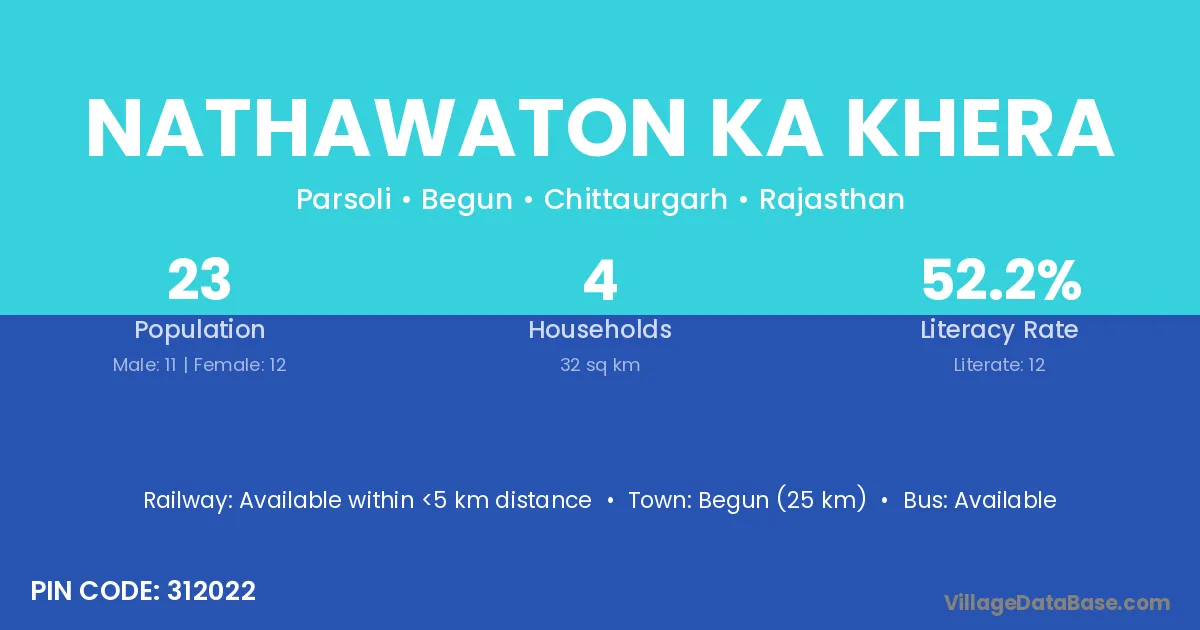 Begun (25 km) is the nearest town to Nathawaton Ka Khera village for major economic activities and is located approximately 25 km away.