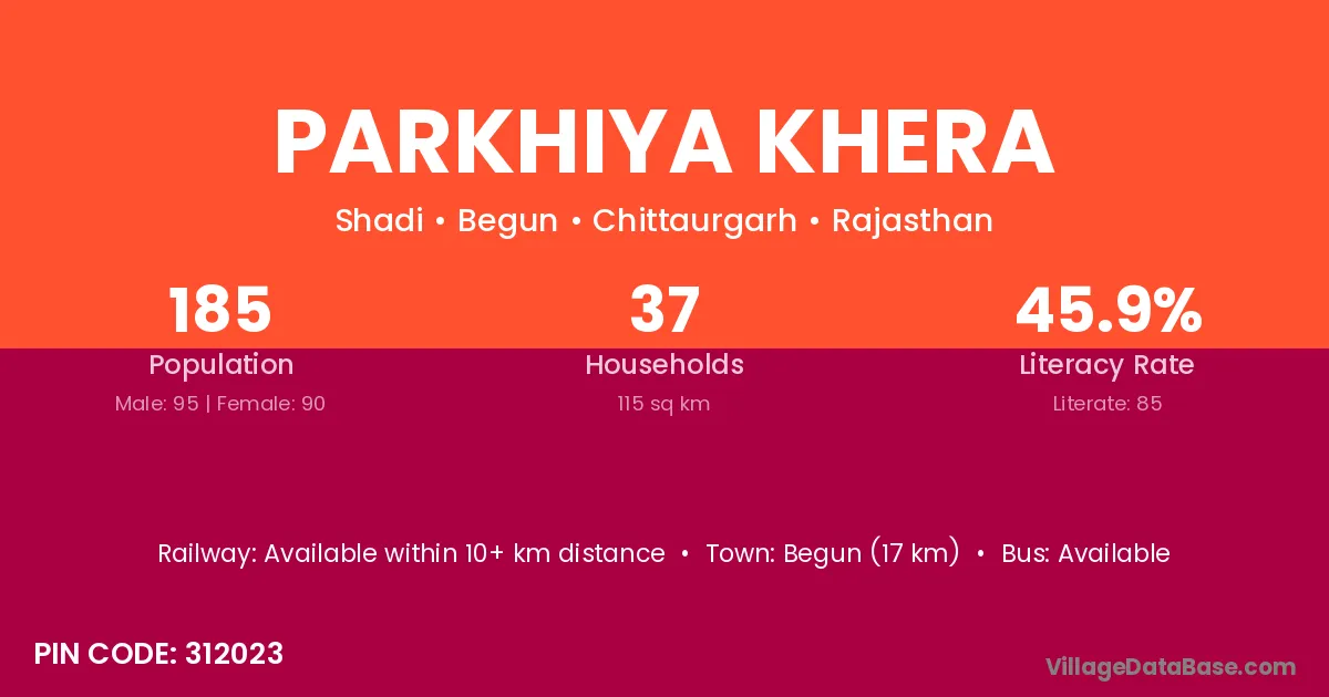 Begun (17 km) is the nearest town to Parkhiya Khera village for major economic activities and is located approximately 17 km away.