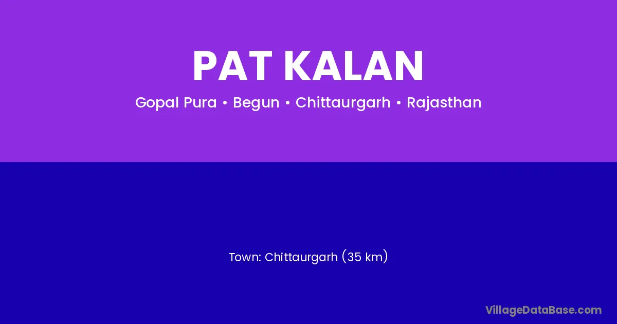 Chittaurgarh (35 km) is the nearest town to Pat Kalan village for major economic activities and is located approximately 35 km away.