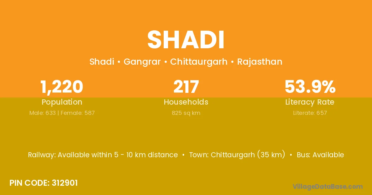 Begun (14 km) is the nearest town to Shadi village for major economic activities and is located approximately 14 km away.