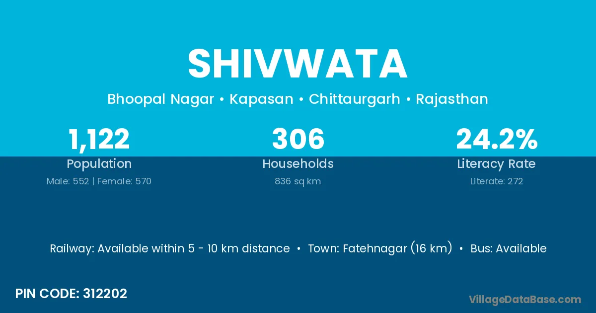 Fatehnagar (16 km) is the nearest town to Shivwata village for major economic activities and is located approximately 16 km away.