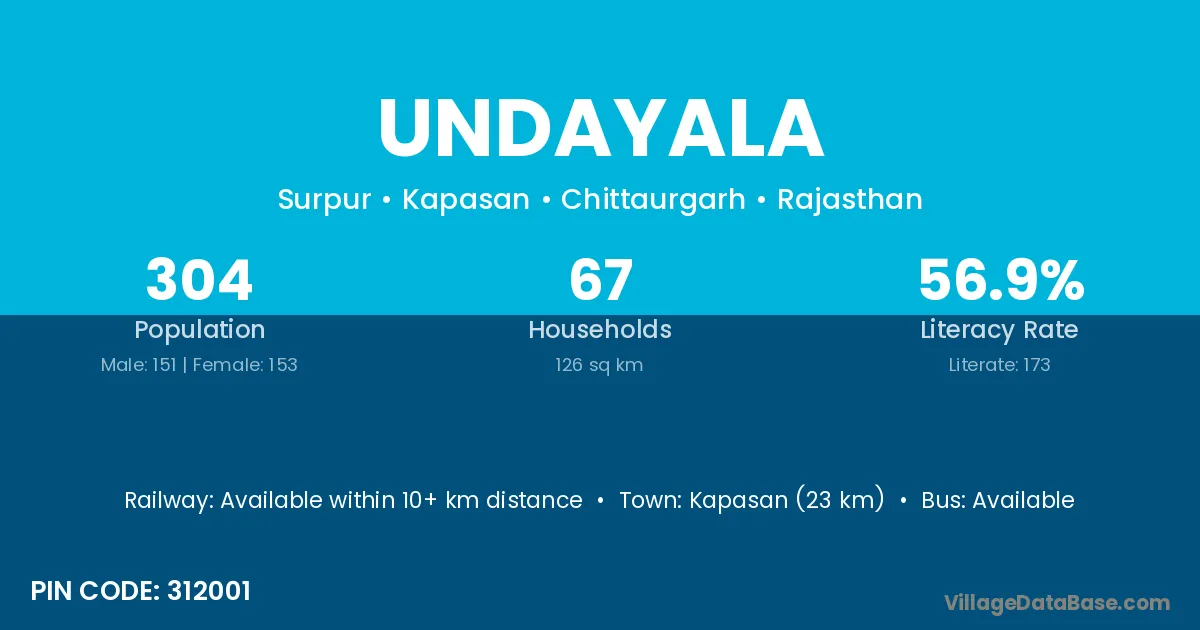 Kapasan (23 km) is the nearest town to Undayala village for major economic activities and is located approximately 23 km away.