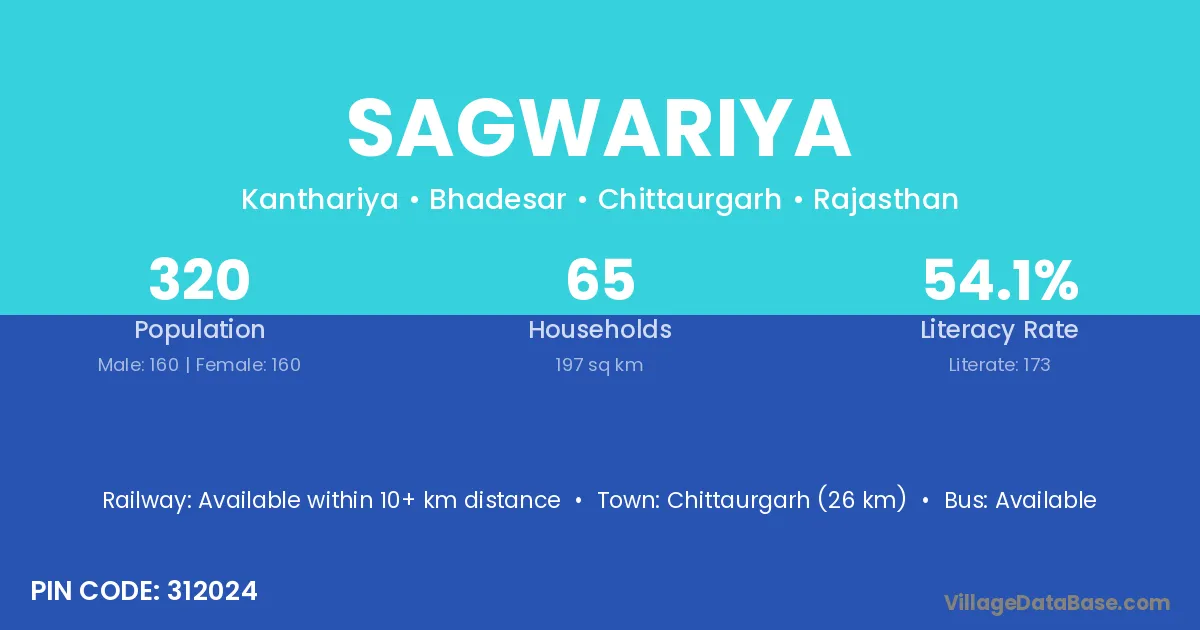Nimbahera (12 km) is the nearest town to Sagwariya village for major economic activities and is located approximately 12 km away.