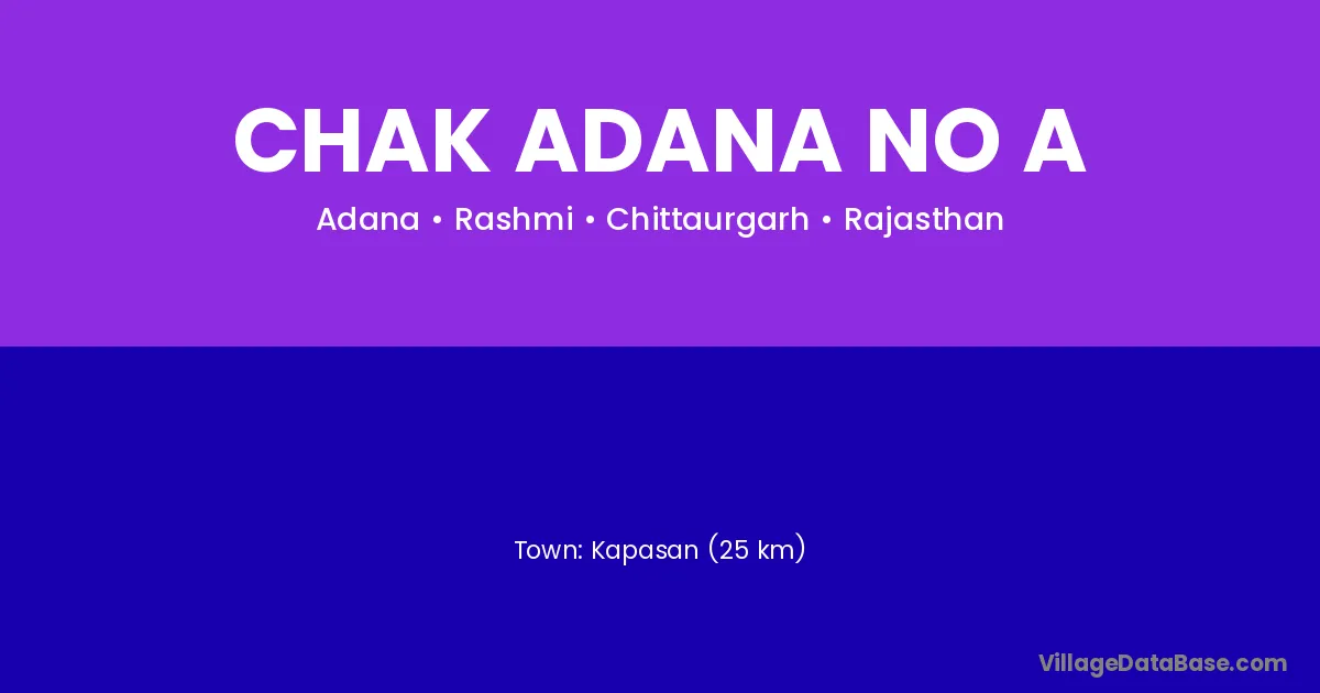 Kapasan (25 km) is the nearest town to Chak Adana No A village for major economic activities and is located approximately 25 km away.