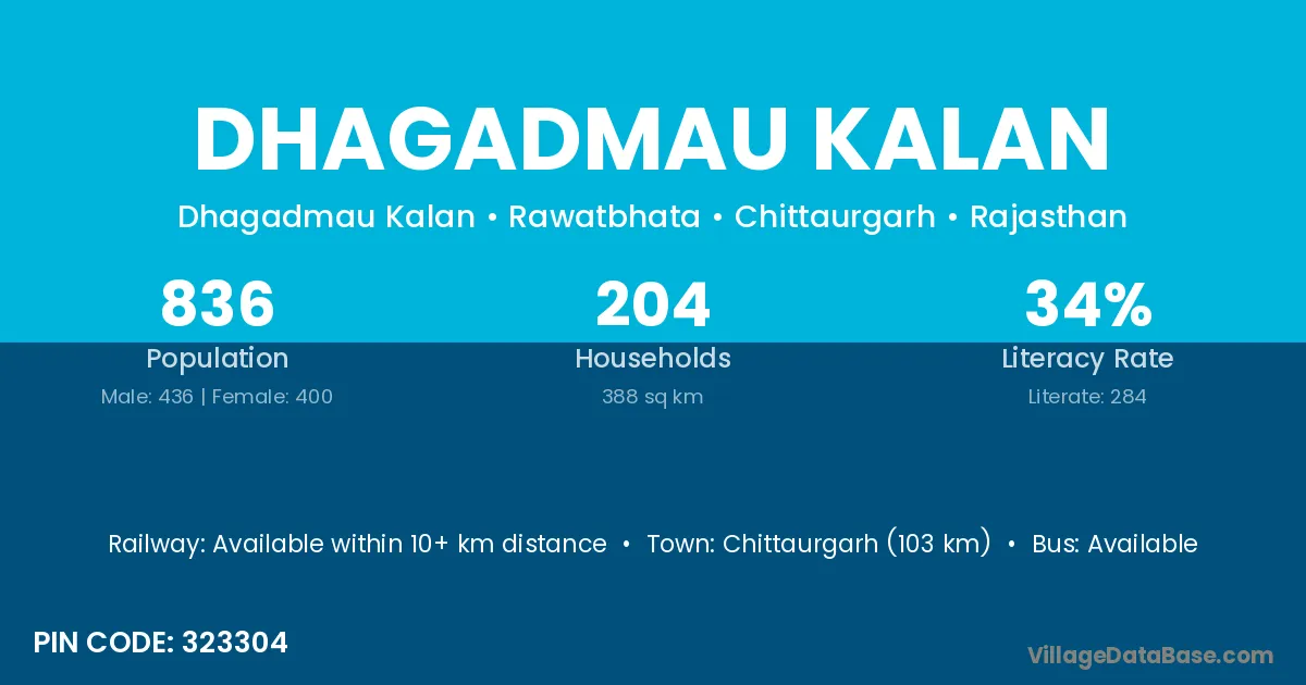 Chittaurgarh (103 km) is the nearest town to Dhagadmau Kalan village for major economic activities and is located approximately 103 km away.