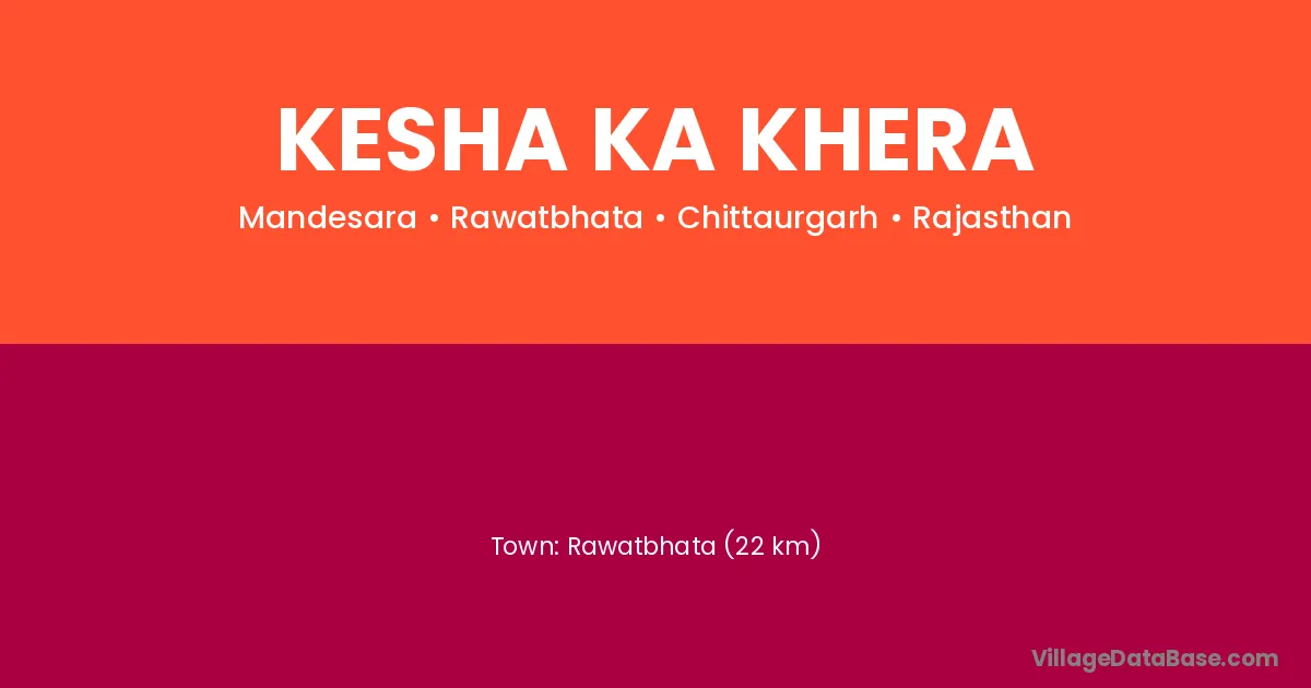 Rawatbhata (22 km) is the nearest town to Kesha Ka Khera village for major economic activities and is located approximately 22 km away.