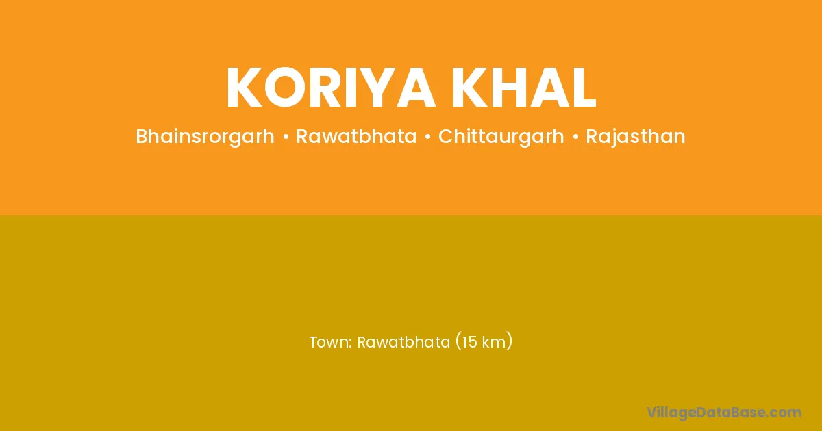 Rawatbhata (15 km) is the nearest town to Koriya Khal village for major economic activities and is located approximately 15 km away.