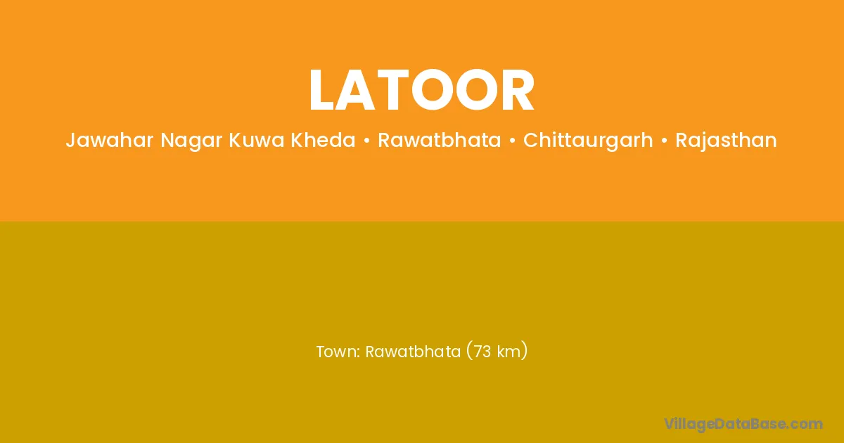 Rawatbhata (73 km) is the nearest town to Latoor village for major economic activities and is located approximately 73 km away.