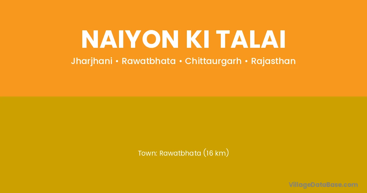Rawatbhata (16 km) is the nearest town to Naiyon Ki Talai village for major economic activities and is located approximately 16 km away.